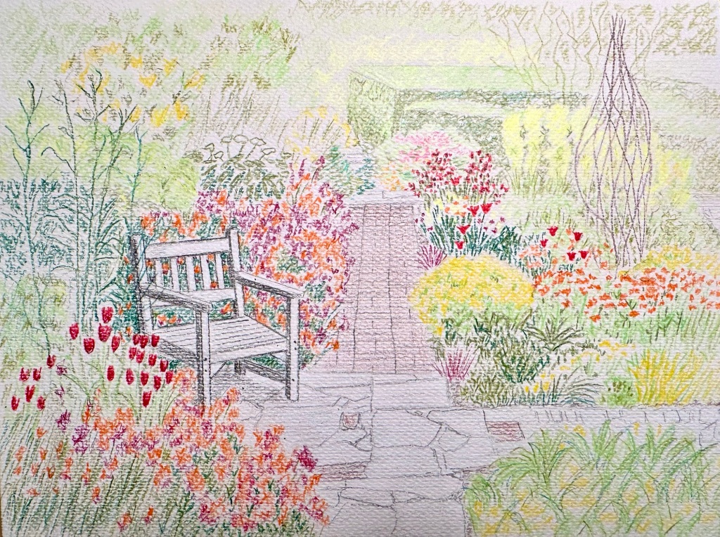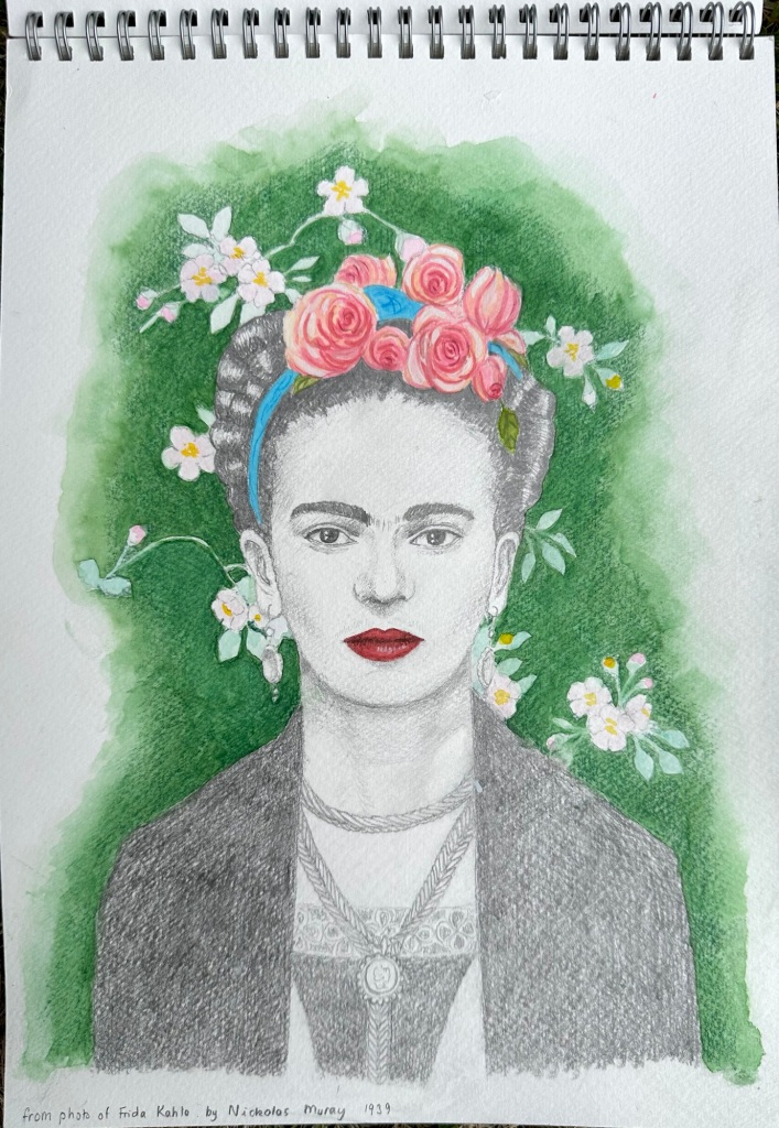 Tracy’s images of Frida Kahlo were painted in watercolours, as were the underwater eagle spotted rays. The cottage garden at Sissinghurst is in coloured pencils, lightly pressed on to the paper so the finished effect is delicate.