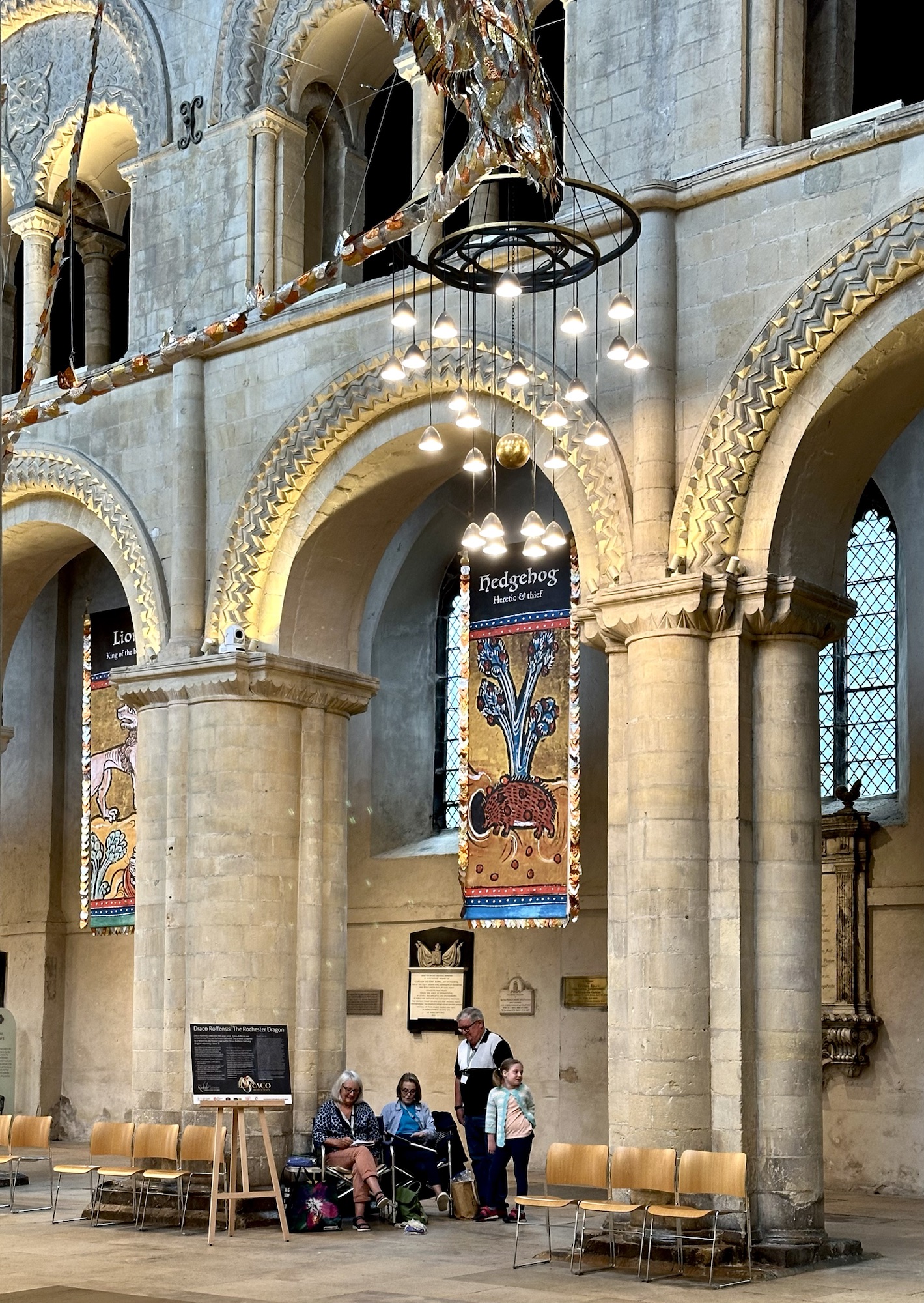 A few months ago some members embossed metal scales for a project at the cathedral. 12500 scales now adorn the Draco Roffensis dragon sculpture that is hanging above the nave. Here are photos of the sculpture and views in and around the cathedral.